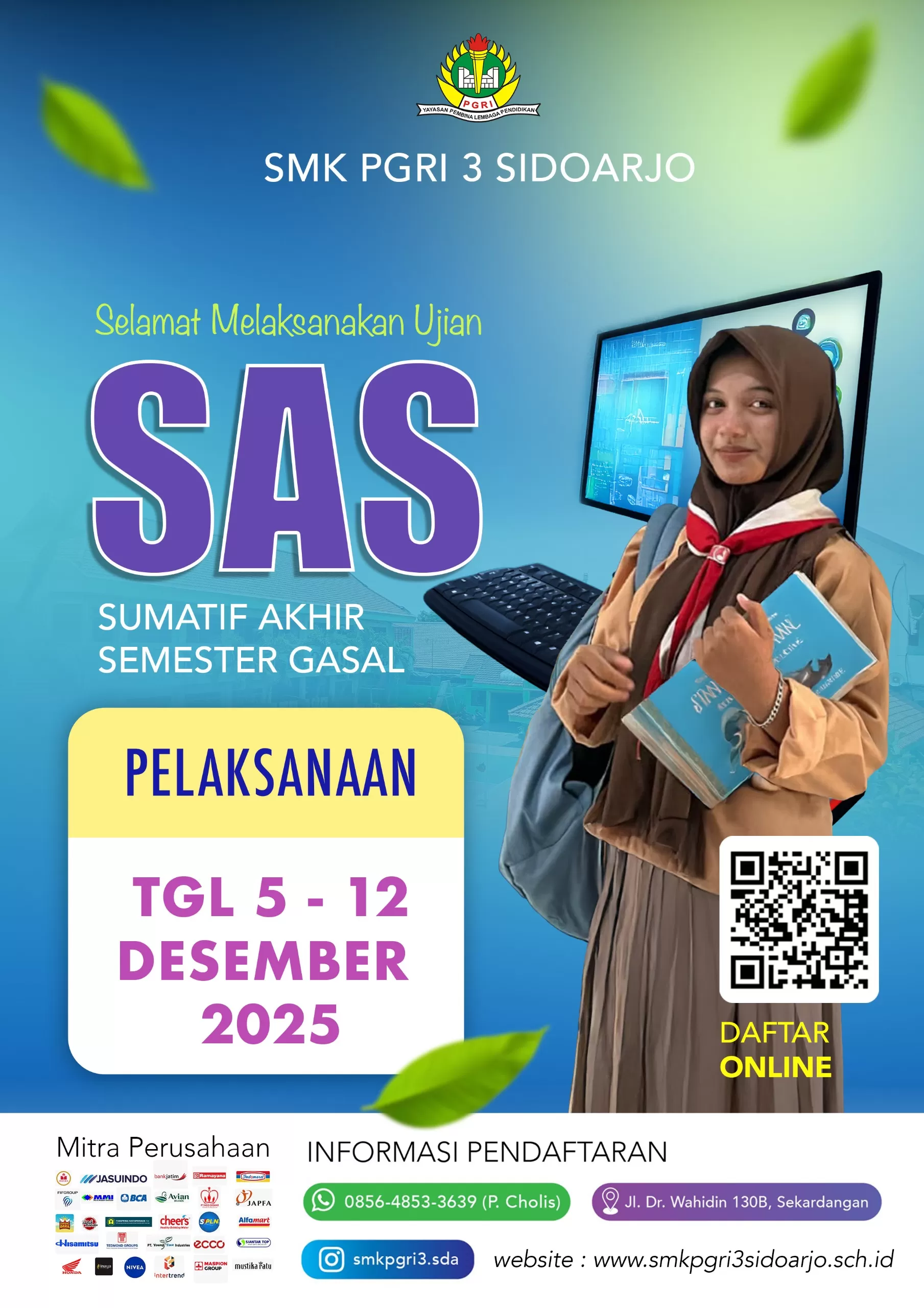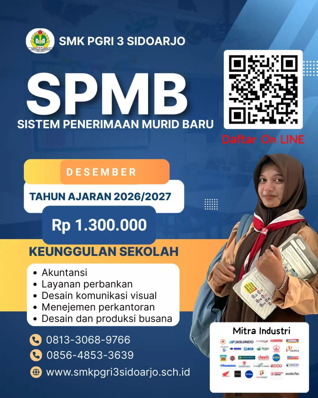 Saya sebagai pimpinan sekolah menyambut baik SMK PGRI 3 SIDOARJO dalam upaya menyediakan website sekolah sebagai sarana informasi publik untuk meningkatan pelayanan kepada masyarakat dalam bidang pendidikan, khususnya bagi keluarga besar SMK PGRI 3 SIDOARJO. Semoga dengan tersedianya website ini, masyarakat akan lebih mudah mengakses informasi dan mendapatkan pelayanan yang lebih cepat, mudah, valid dan akuntabel. Selain itu, diharapkan website ini mampu meningkatkan kreatifitas dan semangat berkarya bagi segenap civitas akademika SMK PGRI 3 SIDOARJO. Saya menyampaikan ucapan terima kasih kepada semua pihak yang telah membantu tersedianya website sekolah ini. Kritik dan saran yang konstruktif sangat kami harapkan demi perbaikan dan peningkatan kualitas serta kemanfaatan yang lebih luas.