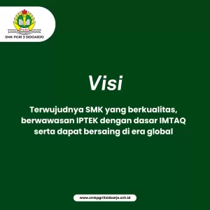 Saya sebagai pimpinan sekolah menyambut baik SMK PGRI 3 SIDOARJO dalam upaya menyediakan website sekolah sebagai sarana informasi publik untuk meningkatan pelayanan kepada masyarakat dalam bidang pendidikan, khususnya bagi keluarga besar SMK PGRI 3 SIDOARJO. Semoga dengan tersedianya website ini, masyarakat akan lebih mudah mengakses informasi dan mendapatkan pelayanan yang lebih cepat, mudah, valid dan akuntabel. Selain itu, diharapkan website ini mampu meningkatkan kreatifitas dan semangat berkarya bagi segenap civitas akademika SMK PGRI 3 SIDOARJO. Saya menyampaikan ucapan terima kasih kepada semua pihak yang telah membantu tersedianya website sekolah ini. Kritik dan saran yang konstruktif sangat kami harapkan demi perbaikan dan peningkatan kualitas serta kemanfaatan yang lebih luas.